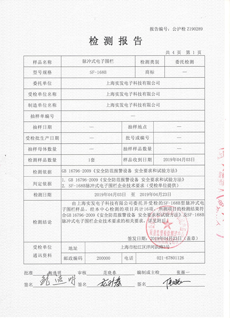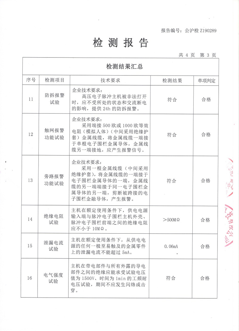 脉冲式电子围栏检测报告(国际)