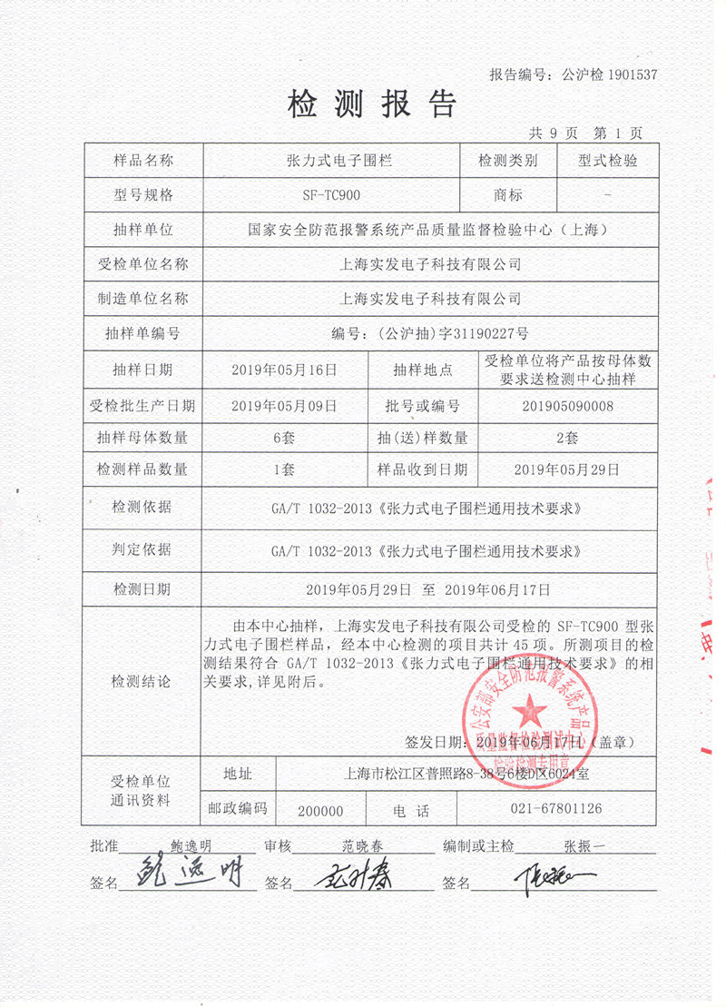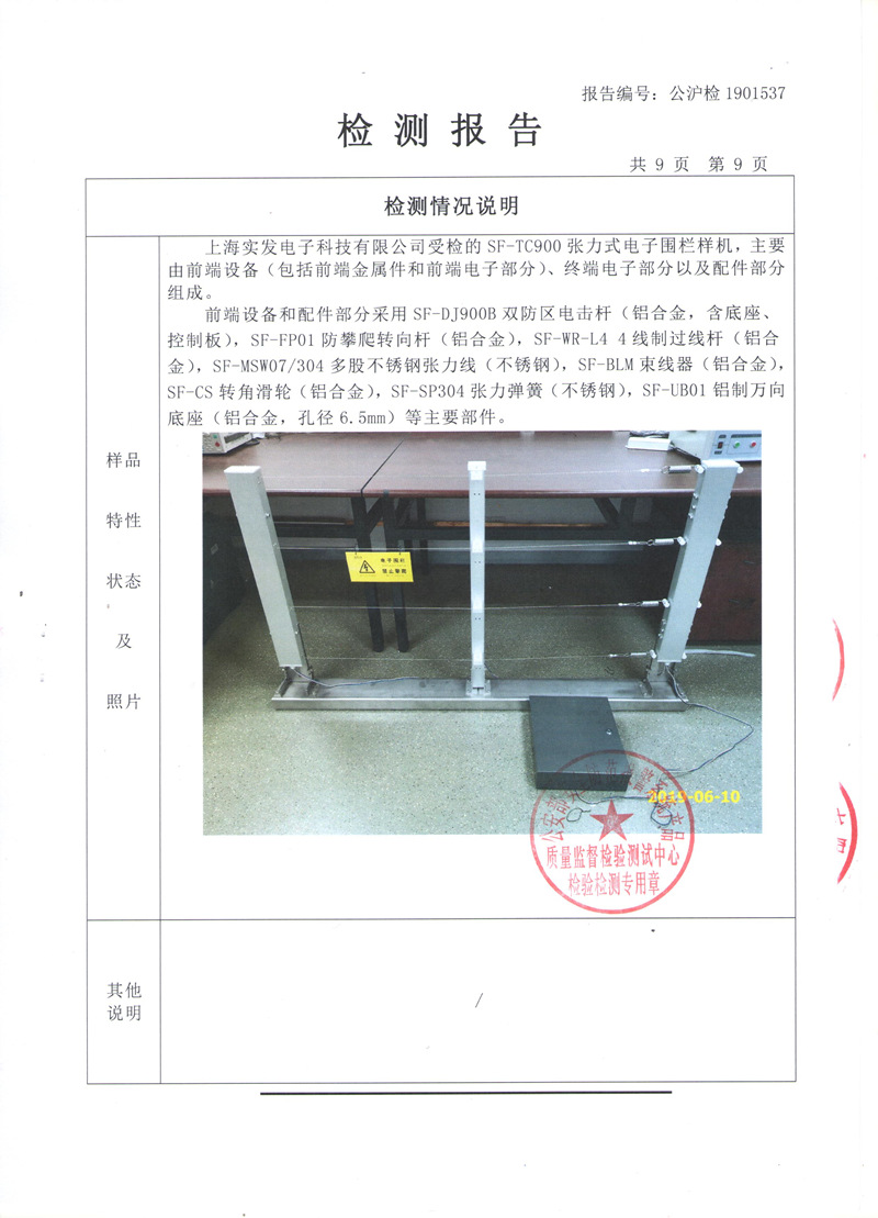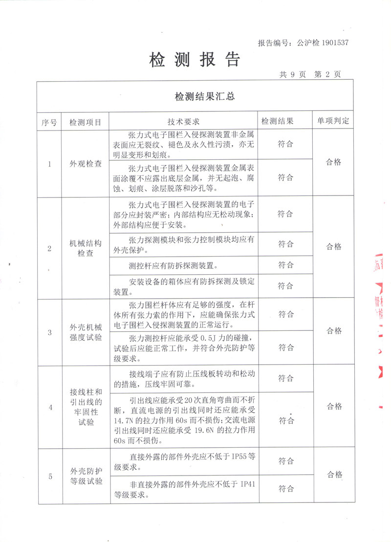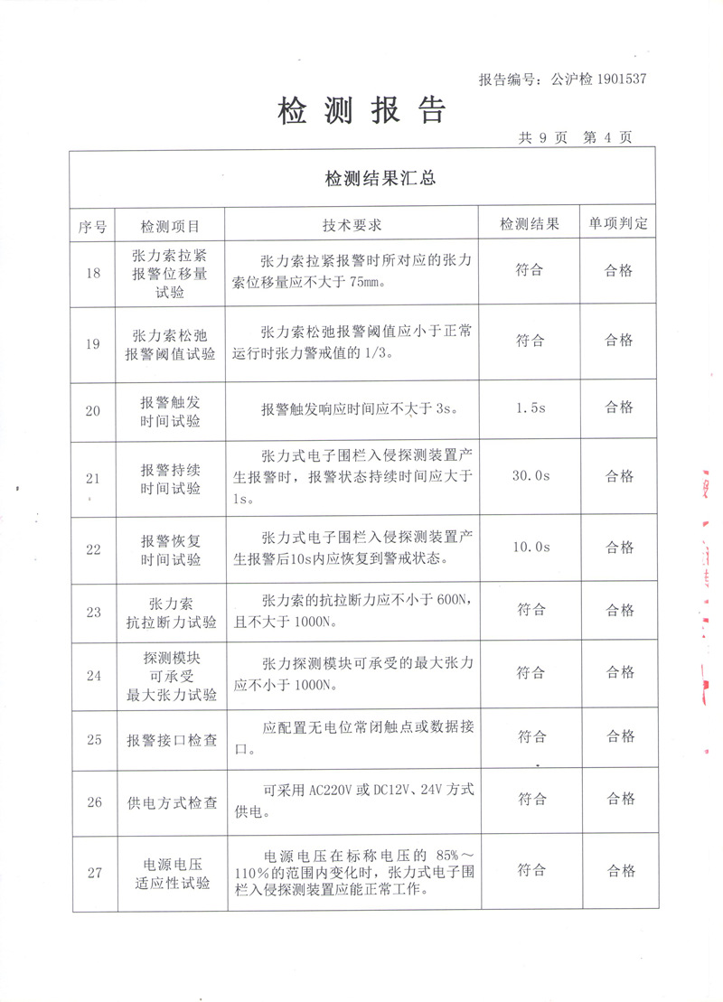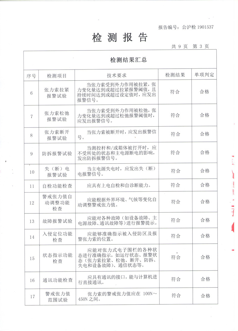 张力式电子围栏检测报告(国标)